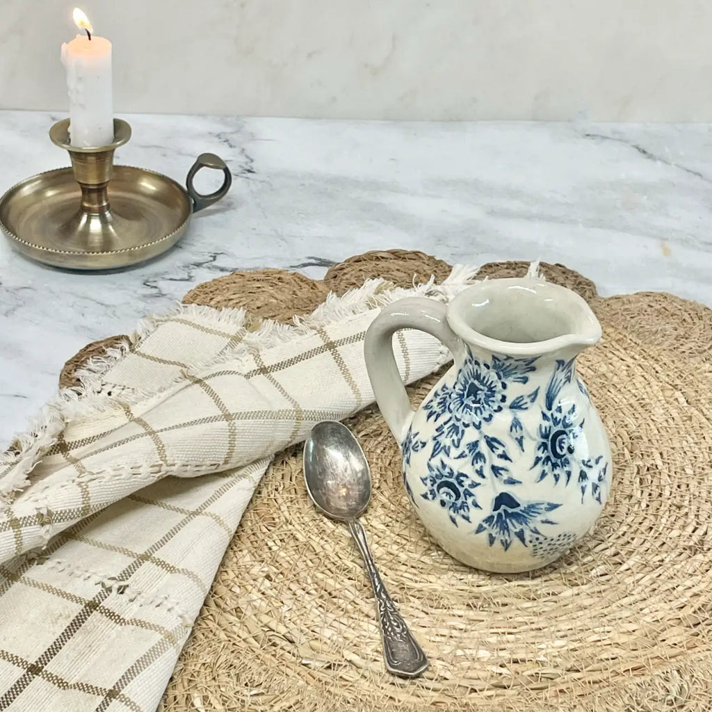 MannaVintage French Inspired hand- painted Talavera creamer. Due to the handmade nature of this item, there will be slight variations in design and size. Ceramic, Certified Talavera Pottery. Handmade in Mexico.