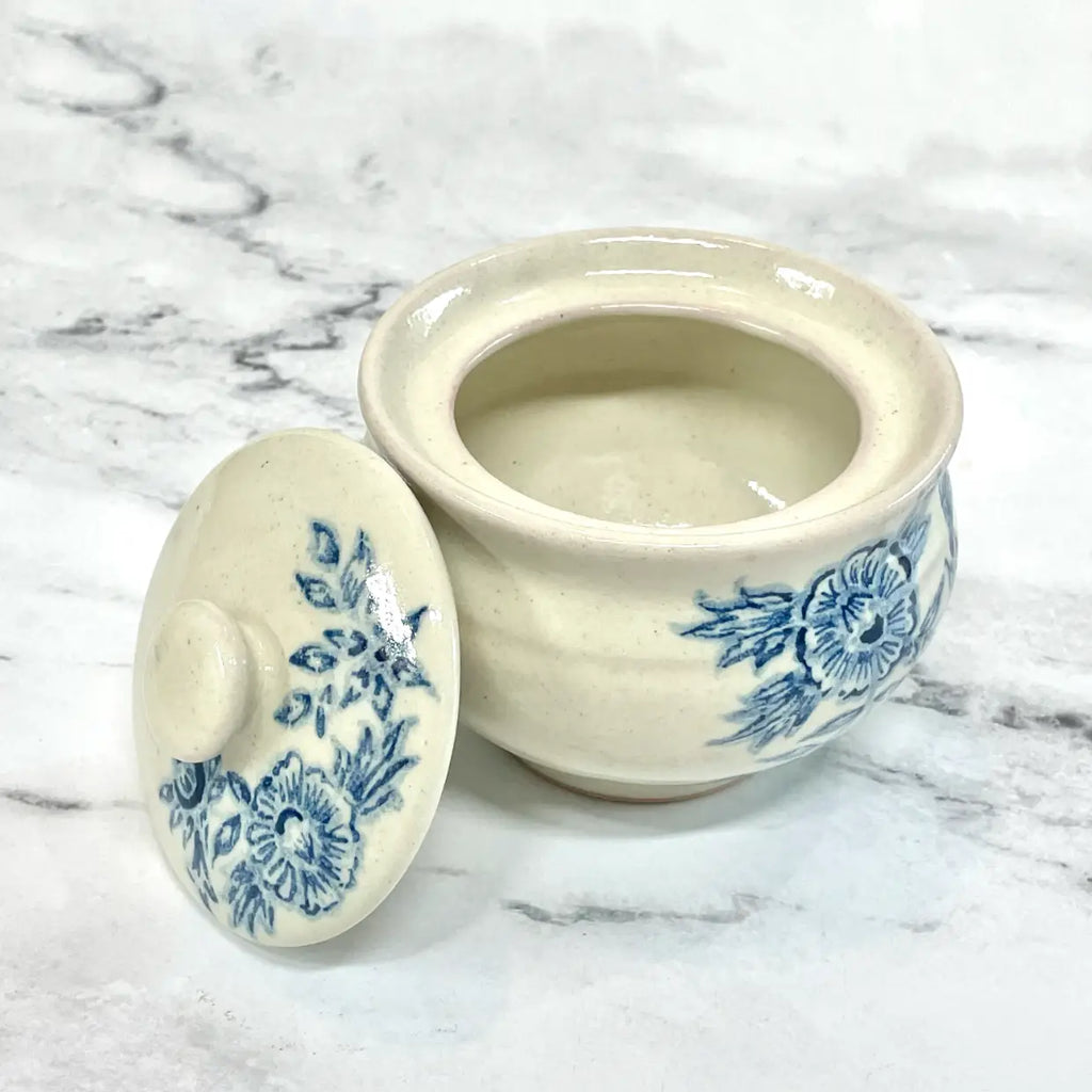 MannaVintage French Inspired hand- painted Talavera sugar bowl. Due to the handmade nature of this item, there will be slight variations in design and size. Ceramic, Certified Talavera Pottery. Handmade in Mexico.