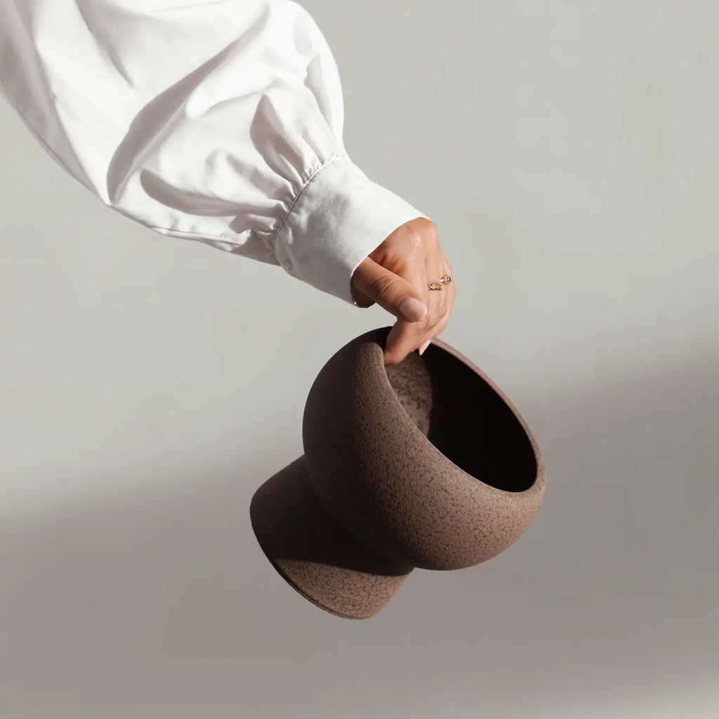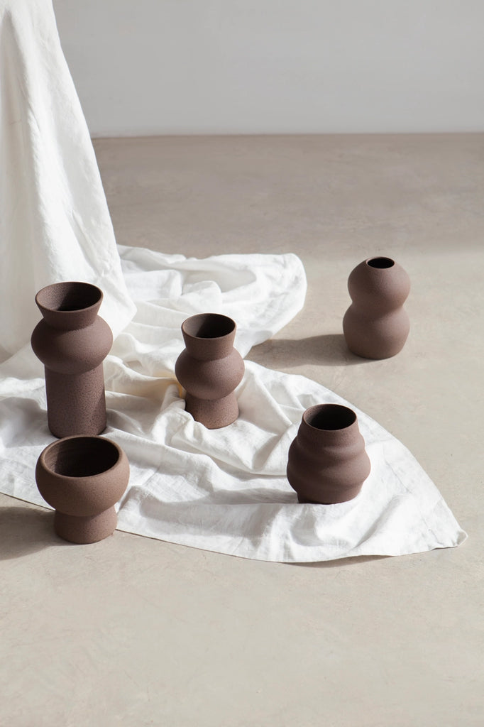 MannaCeramic vase with a textured brown glaze that reflects the captivating and pure beauty of volcanic textures. No two pieces are alike and may contain manual process marks.