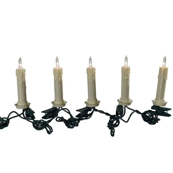 Features ten light up candles. The convenient clip-on design allows for easy and secure placement on branches, garlands, or wreaths. Indoor only.