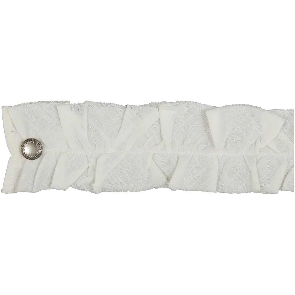 MannaMade from 100% cotton with a double-layer fabric. It features a vintage finish button on the left and a buttonhole on the right. With a tightly stitched micro ruffle running down its center. 9 feet long.