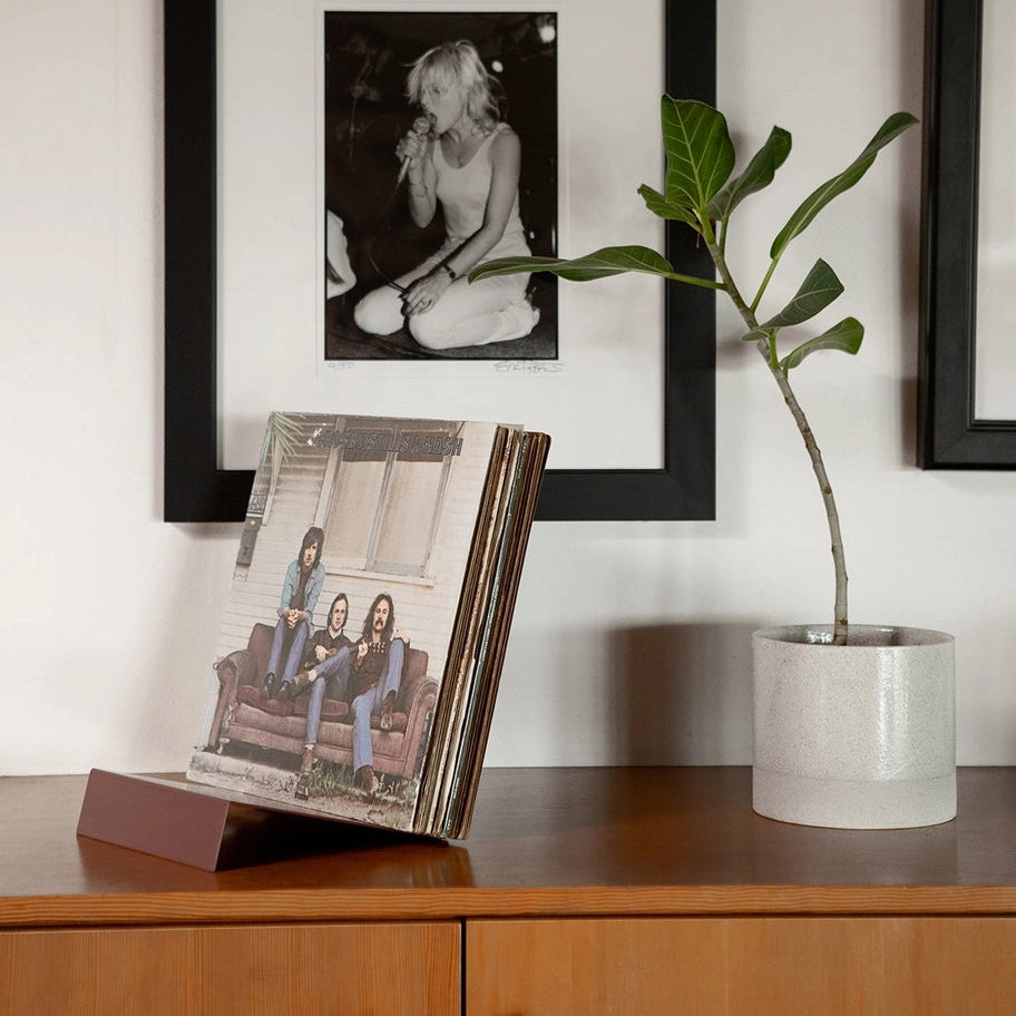 Made to hold records, magazines, books, and cookbooks, this stand is a steel storage and display stand with a powder coat finish.