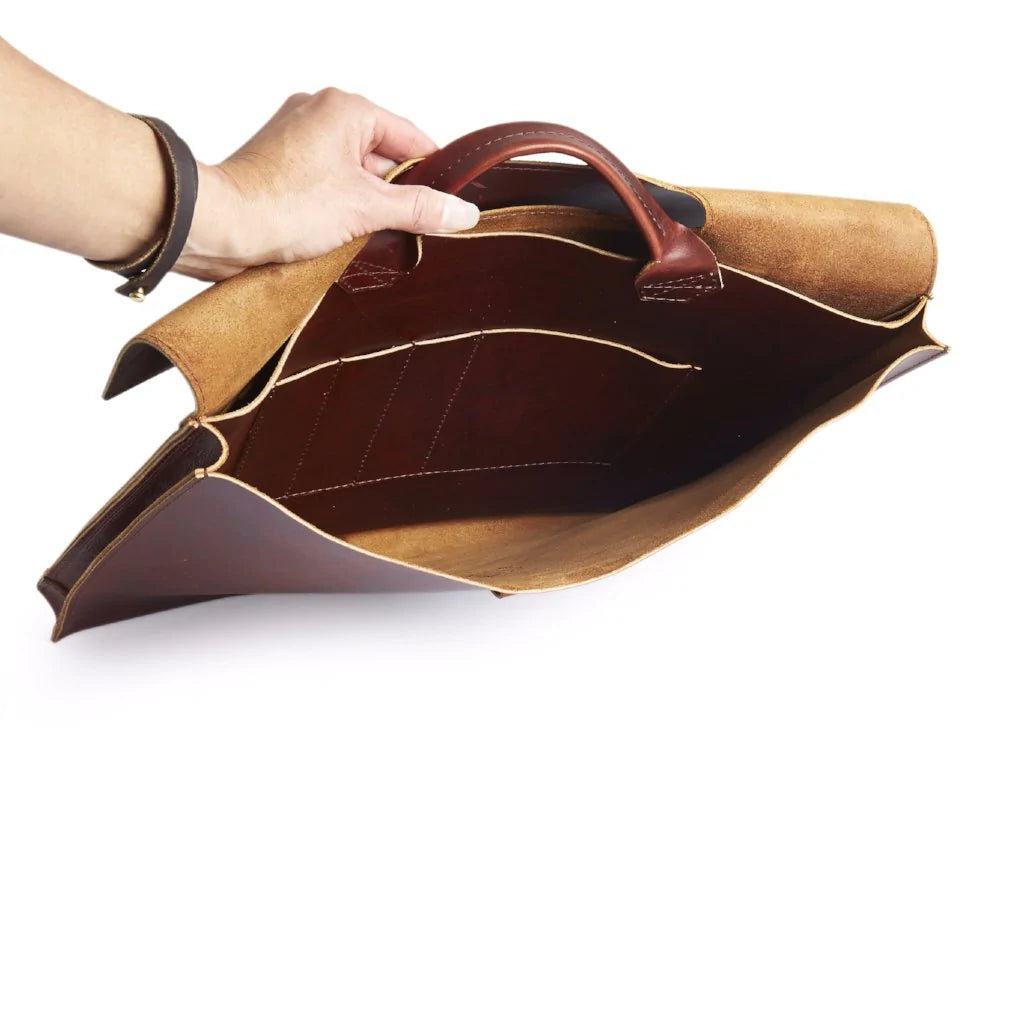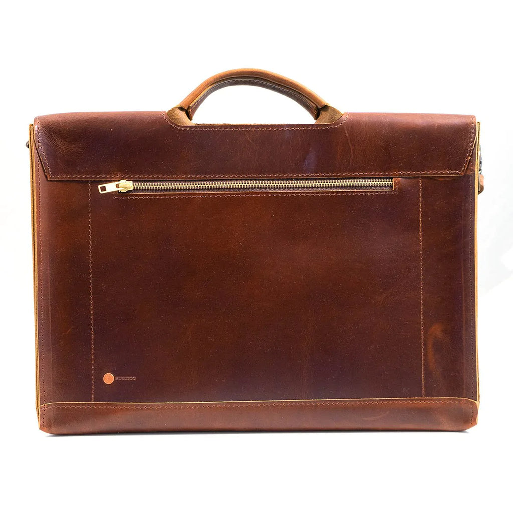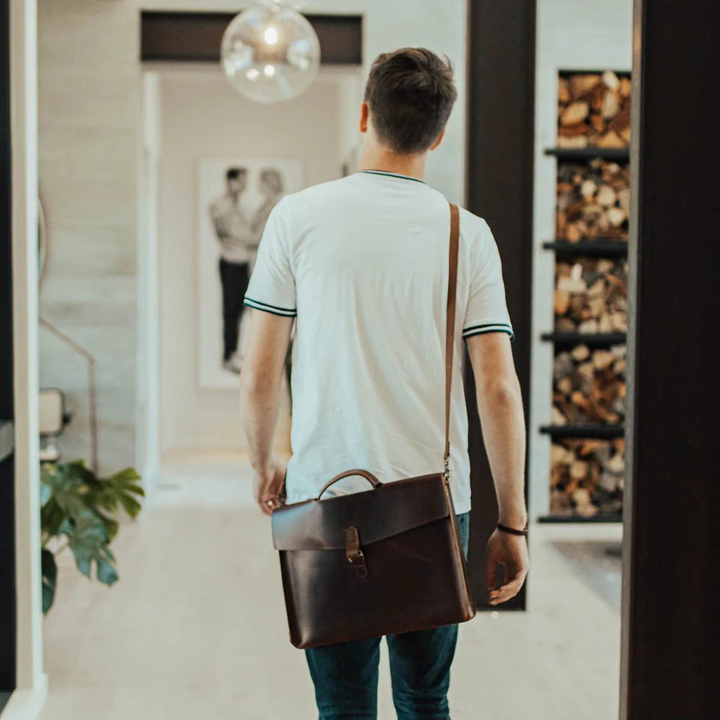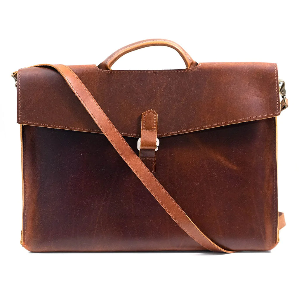 MannaThe Diplomat Leather Attaché Case is a functional and minimal option for the working professional on the move. This slim leather attache case is a professional briefcase bag for carrying a laptop, wallet, cell phone, and all your other accessories. It can be carried at your side using its reinforced leather handle or cross-body with the included shoulder strap for a sleek appearance. The authentic top-grain leather will keep your gear well protected while looking better over time.