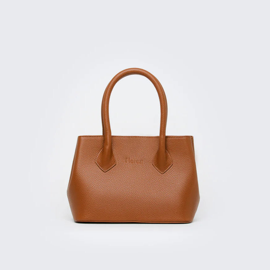 Genuine pebbled leather mini tote bag. Has one interior open pocket and leather handles with an adjustable crossbody strap. Canvas lined interior.