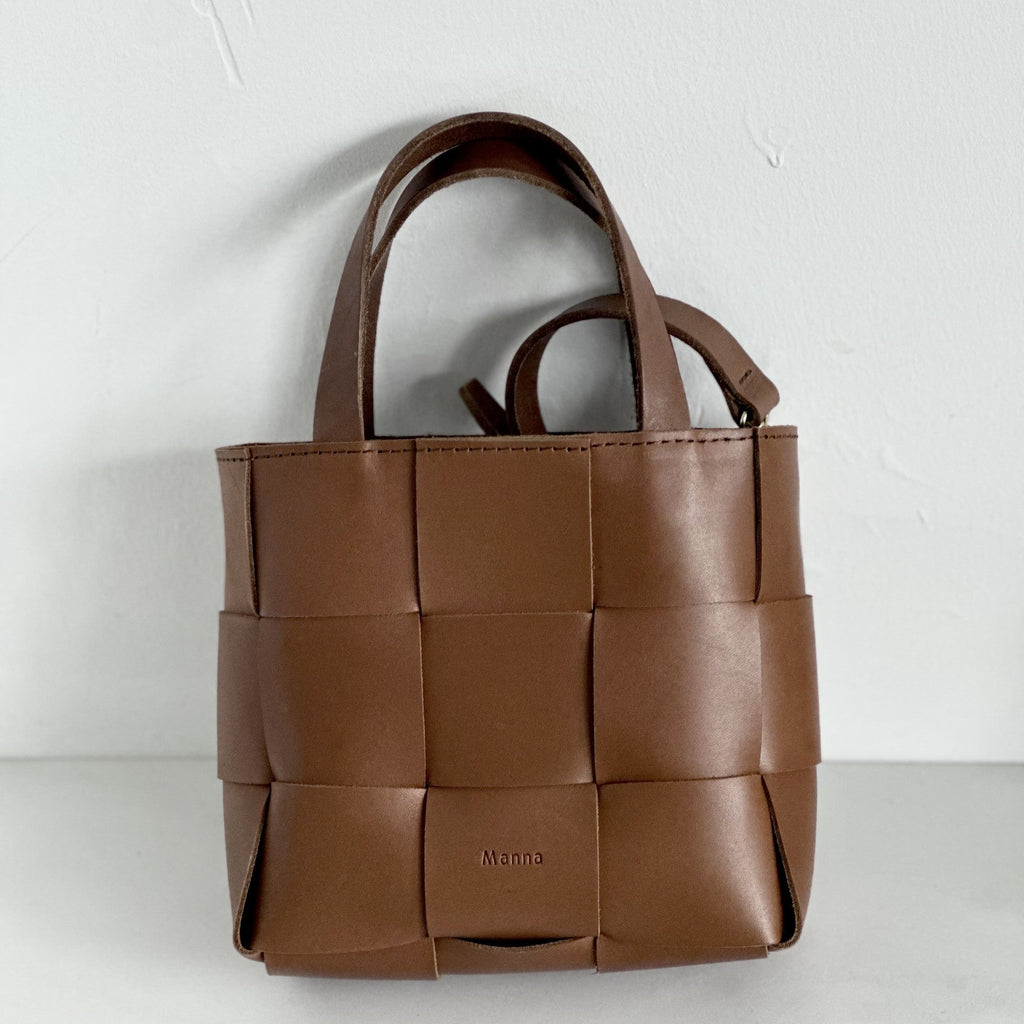 MannaThe Woven Mini Tote is crafted with genuine full-grain leather and features a hand-woven design. Includes a detachable shoulder strap for versatile, hands-free carrying. A blend of craftsmanship and practicality, this mini tote is ideal everyday wear.