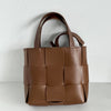 Genuine Leather Woven Mini Tote - Brown