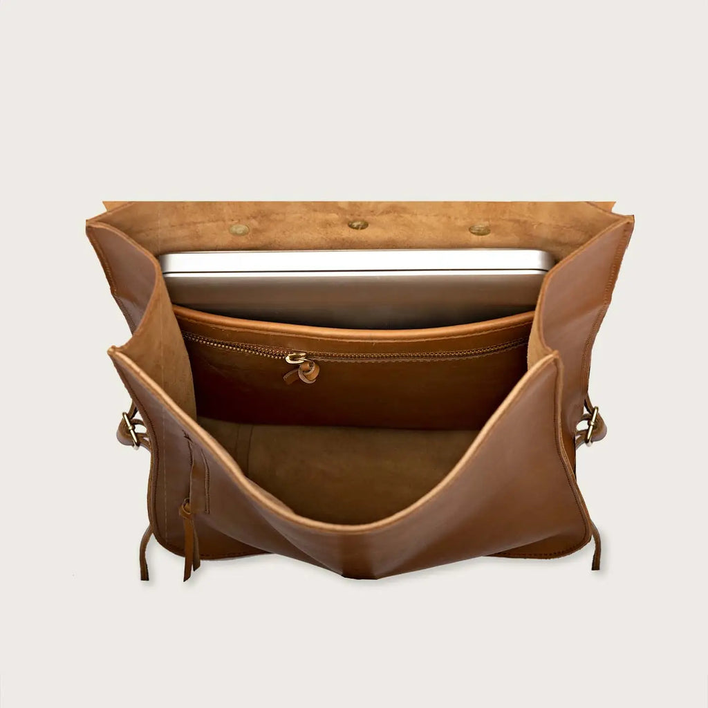 MannaThe perfect leather backpack for daily use. A dedicated laptop sleeve can fit laptops up to 16". Internal and external pockets to keep everything else organized. Adjustable leather straps.