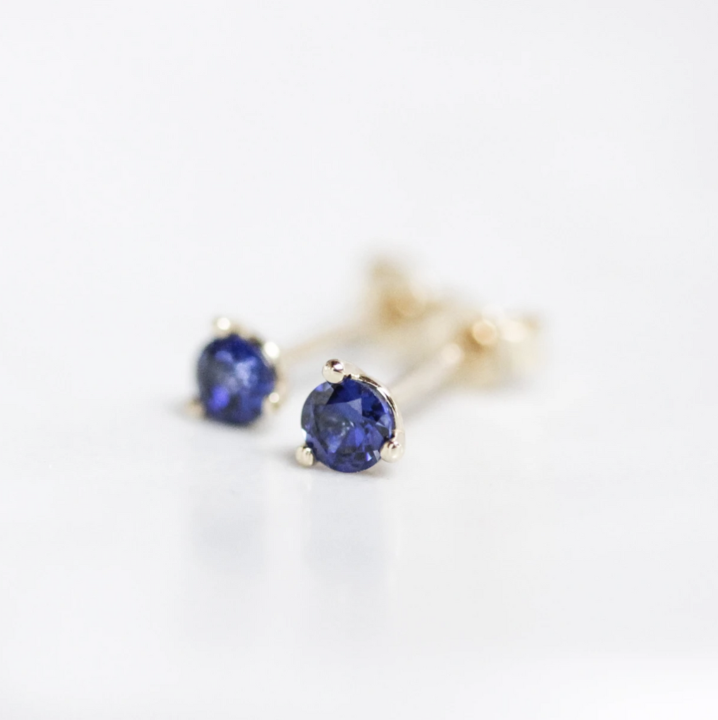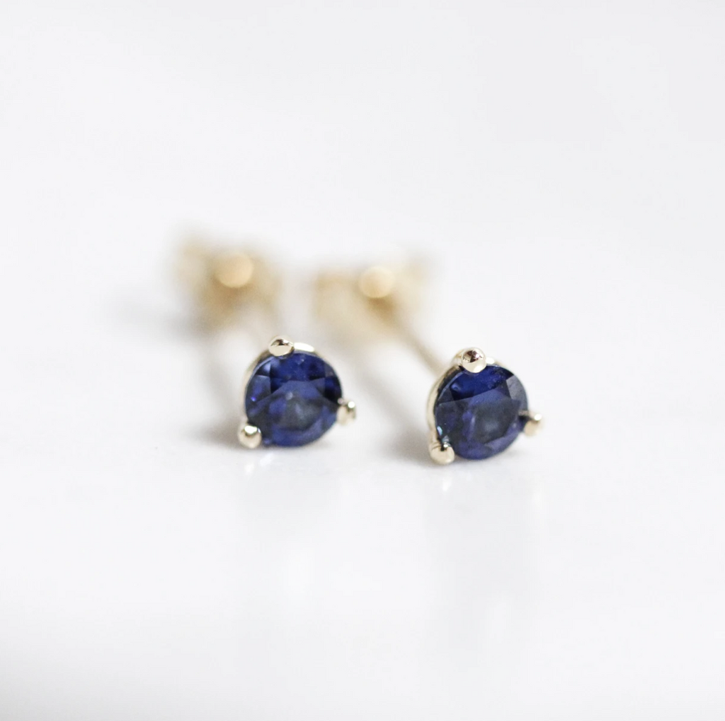 MannaSolid gold posts and modern, 3 prong settings allow for light to play with the vibrant, faceted gemstones or diamonds. Sold individually.