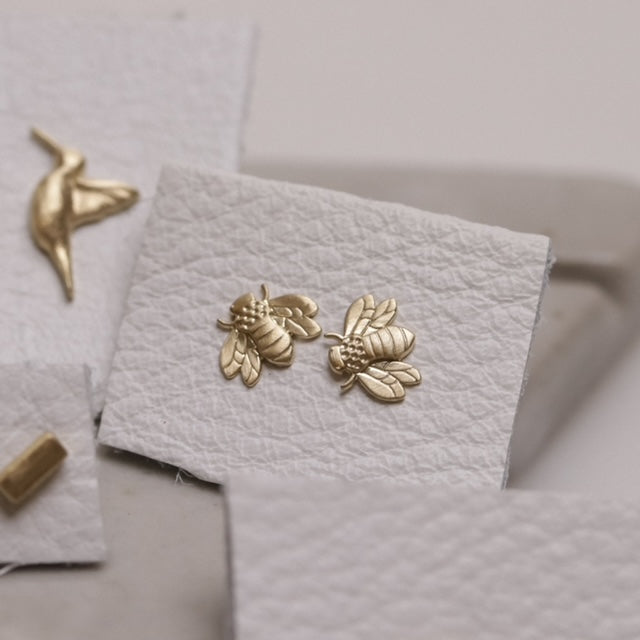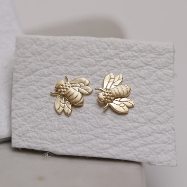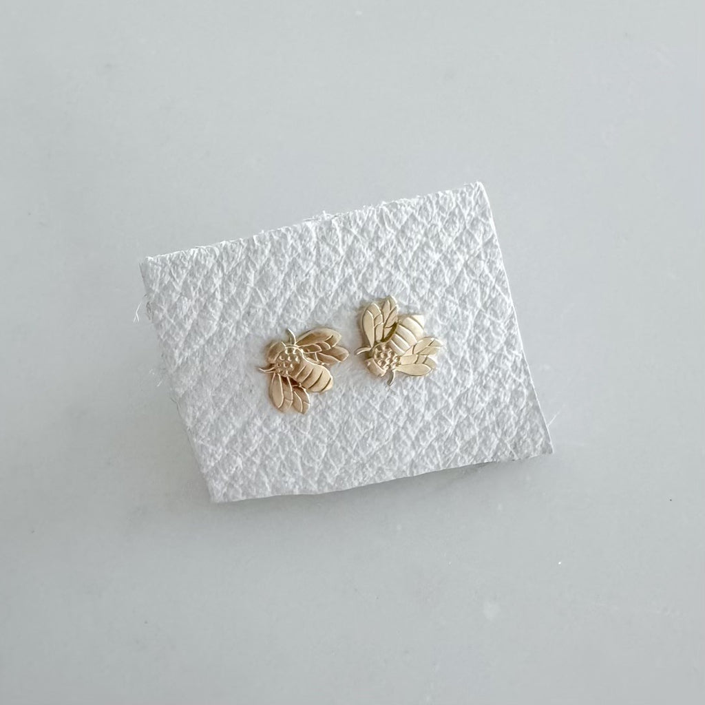 MannaSolid 14k gold bee earrings (studs), in a beautiful matte brushed finish. Sold as a pair.