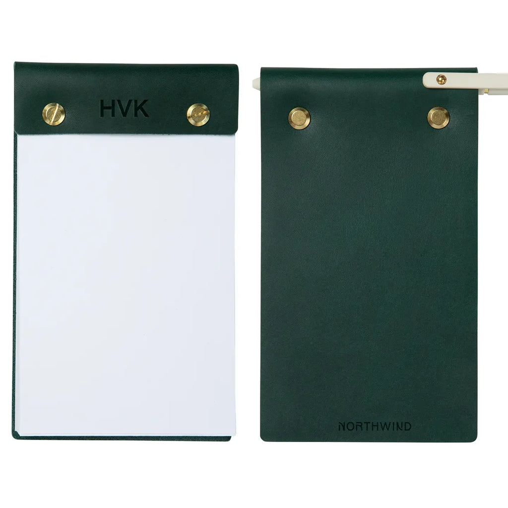 USA-made, sustainable, full-grain leather desk jotter notepad. Comes with 100 sheets of blank, perforated paper.