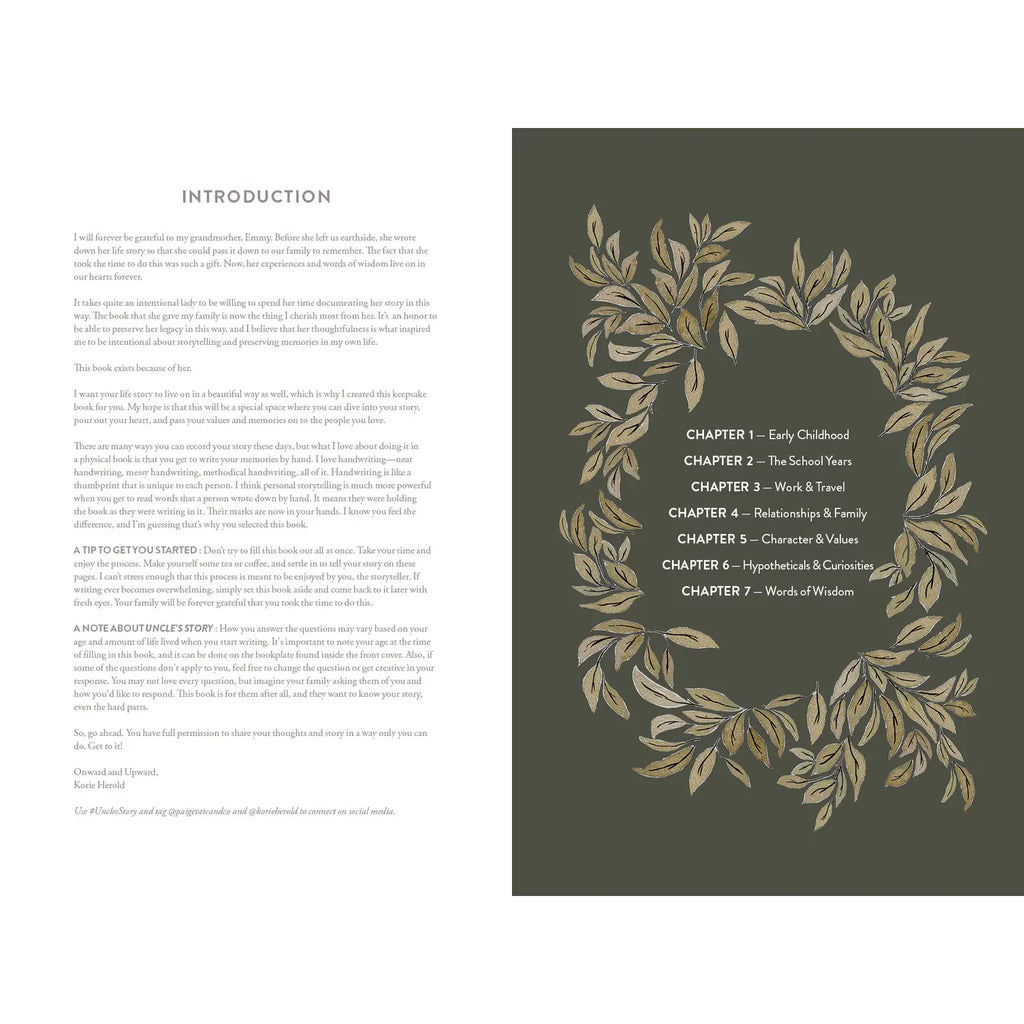 MannaThis keepsake memory book is a special place to record special moments, stories, and advice that you want to pass down to your children one day. Uncles’s Story is a guided journal thoughtfully designed to help uncles of all ages write down memories that they want to preserve and share with their family.