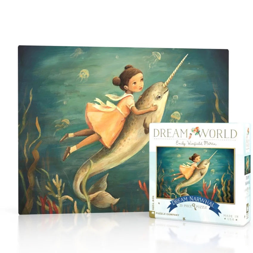 MannaThis 20 piece dream Narwhal puzzle will escort you to the land of dreams and possibly a Tea Party under the sea. From Emily Winfield Martin’s beloved children’s book Dream Animals. Recommended Age: 4+ Years.