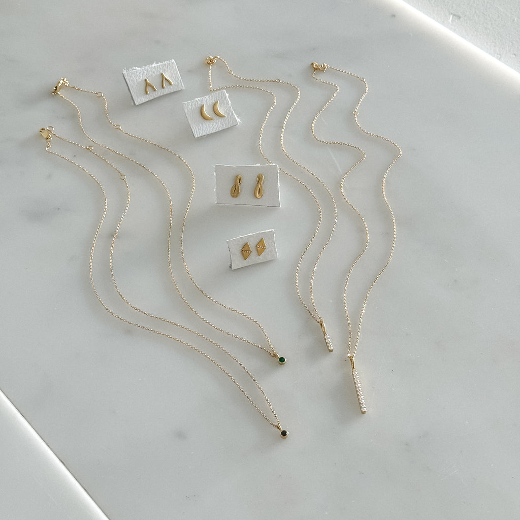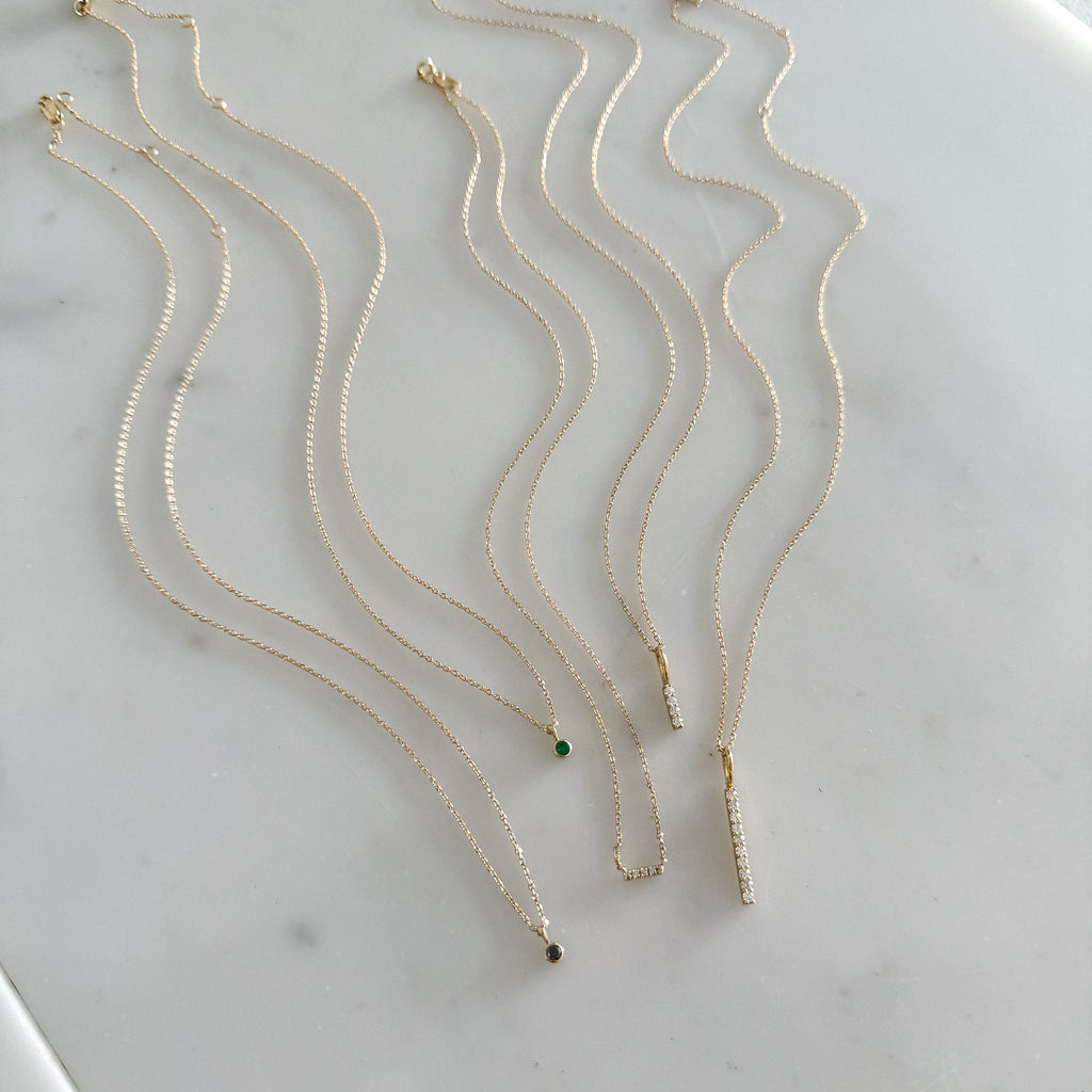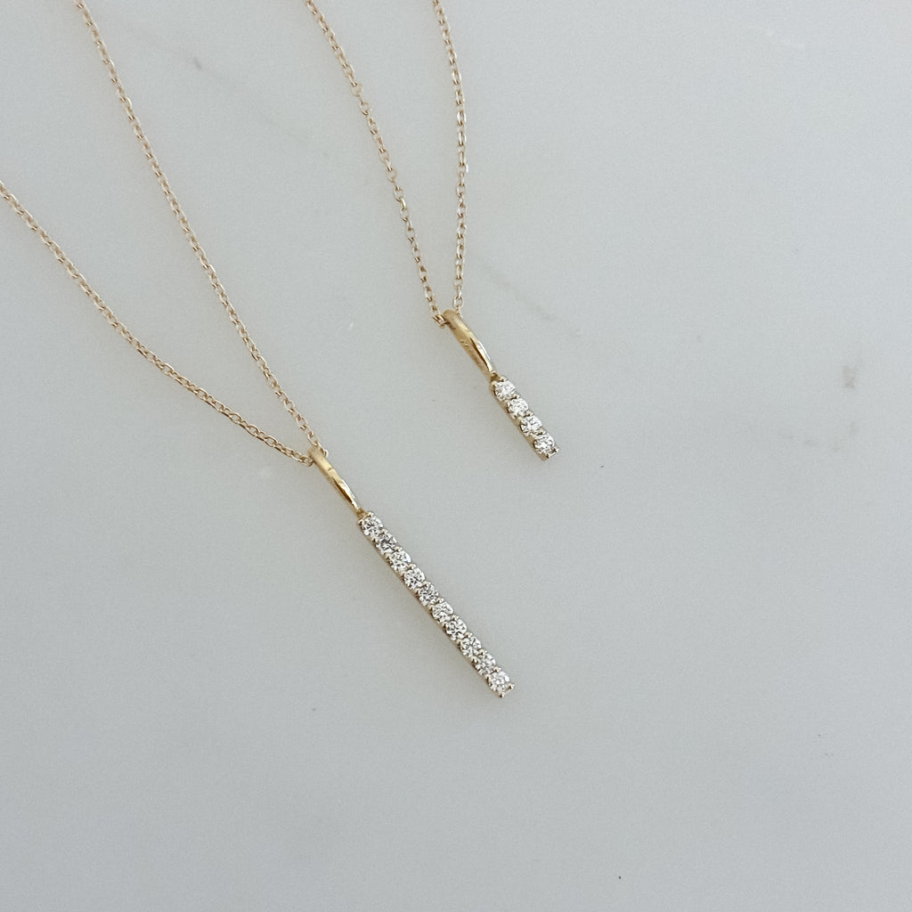 MannaWhite Diamonds cascade down a solid gold pendant and are suspended vertically on a solid 14 karat gold, adjustable chain (16" - 18"). 1.7mm sustainably grown white diamonds (VS / F).