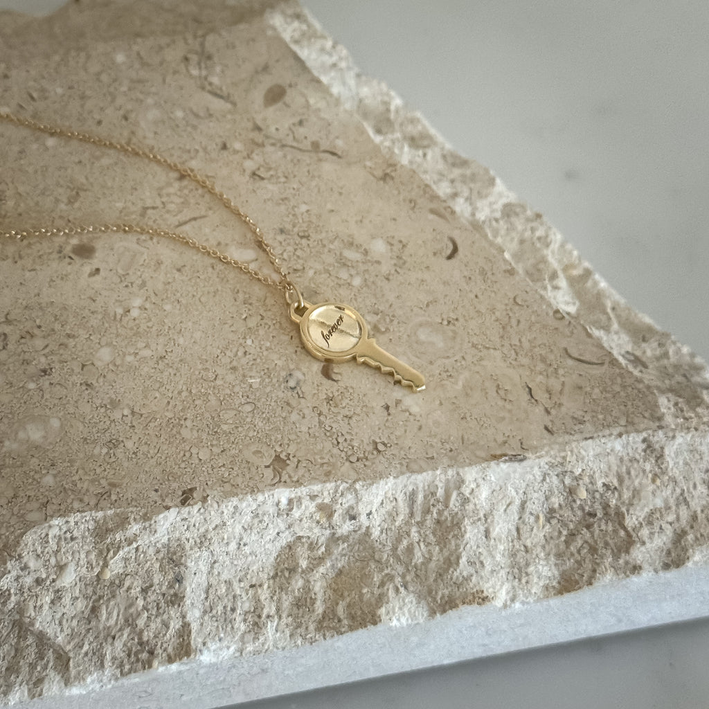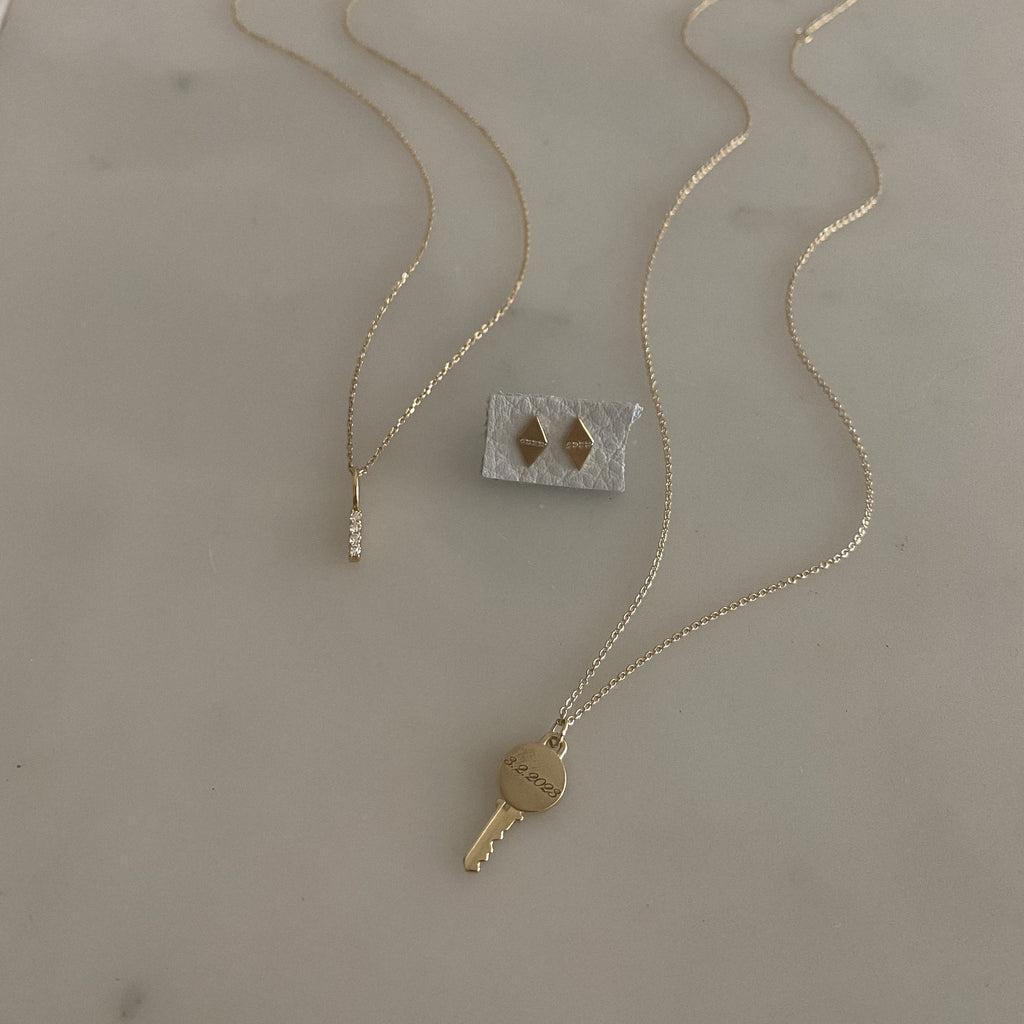 14K Gold Engravable Key Necklace