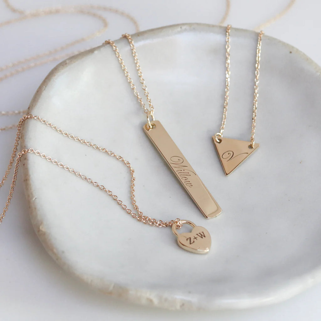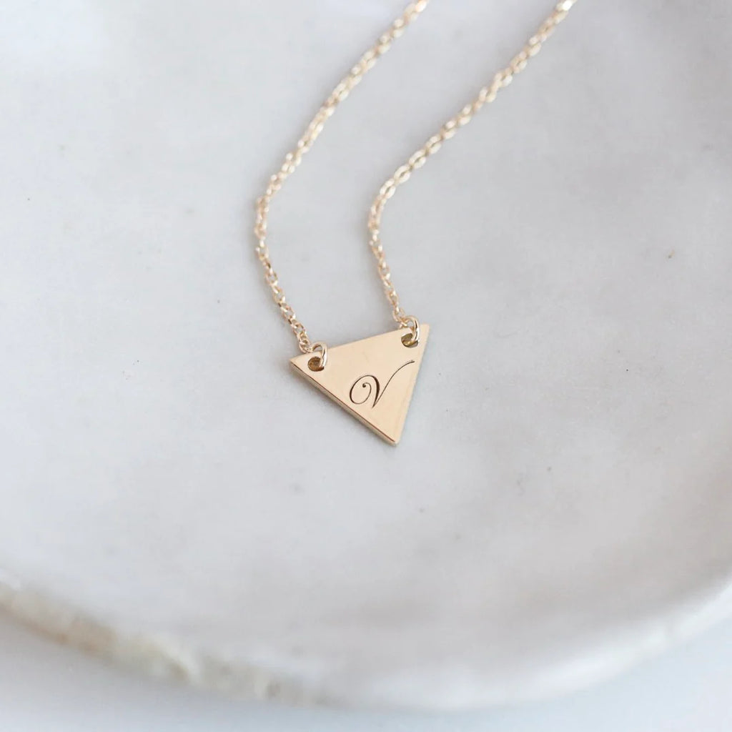 14K Gold Engravable Triangle Pendant Necklace