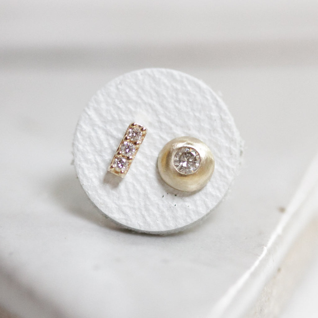 MannaFiery 2.5mm white Diamonds rest within a mound of thick, 14 karat gold. Sold Individually.