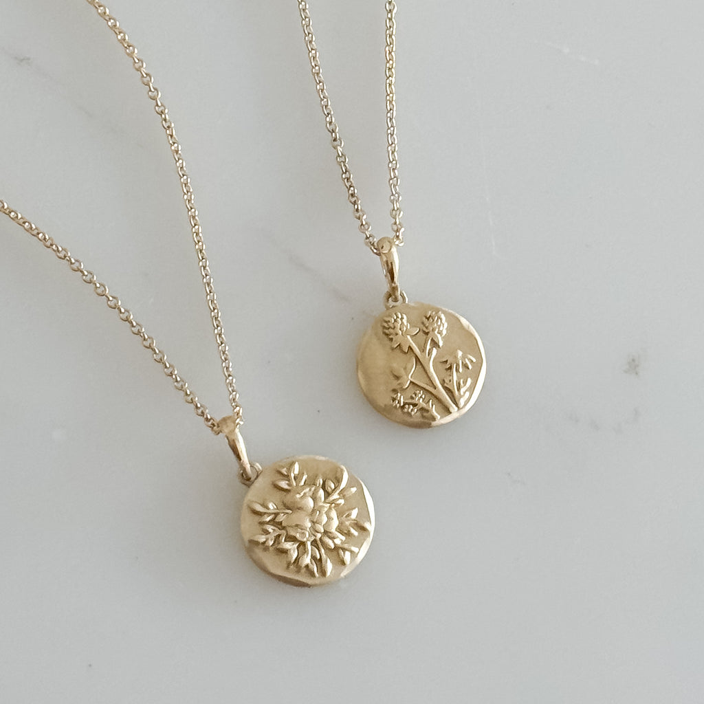 14k Gold Floral Medallion Necklace