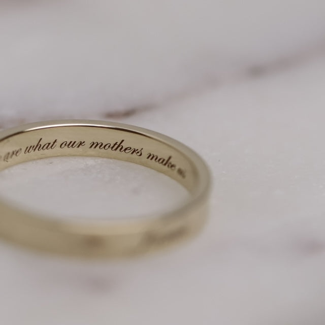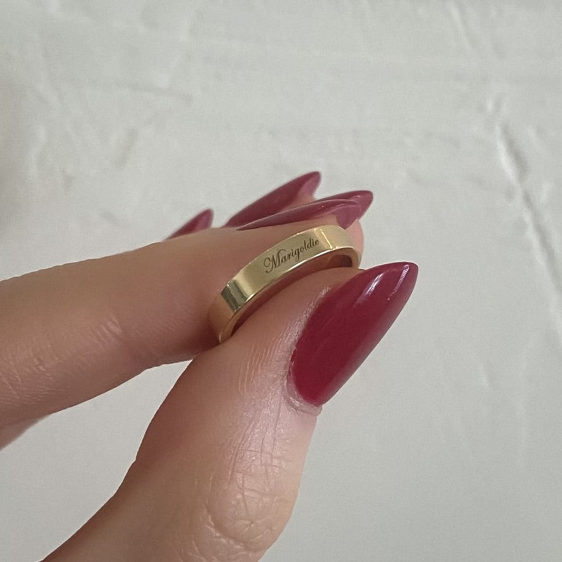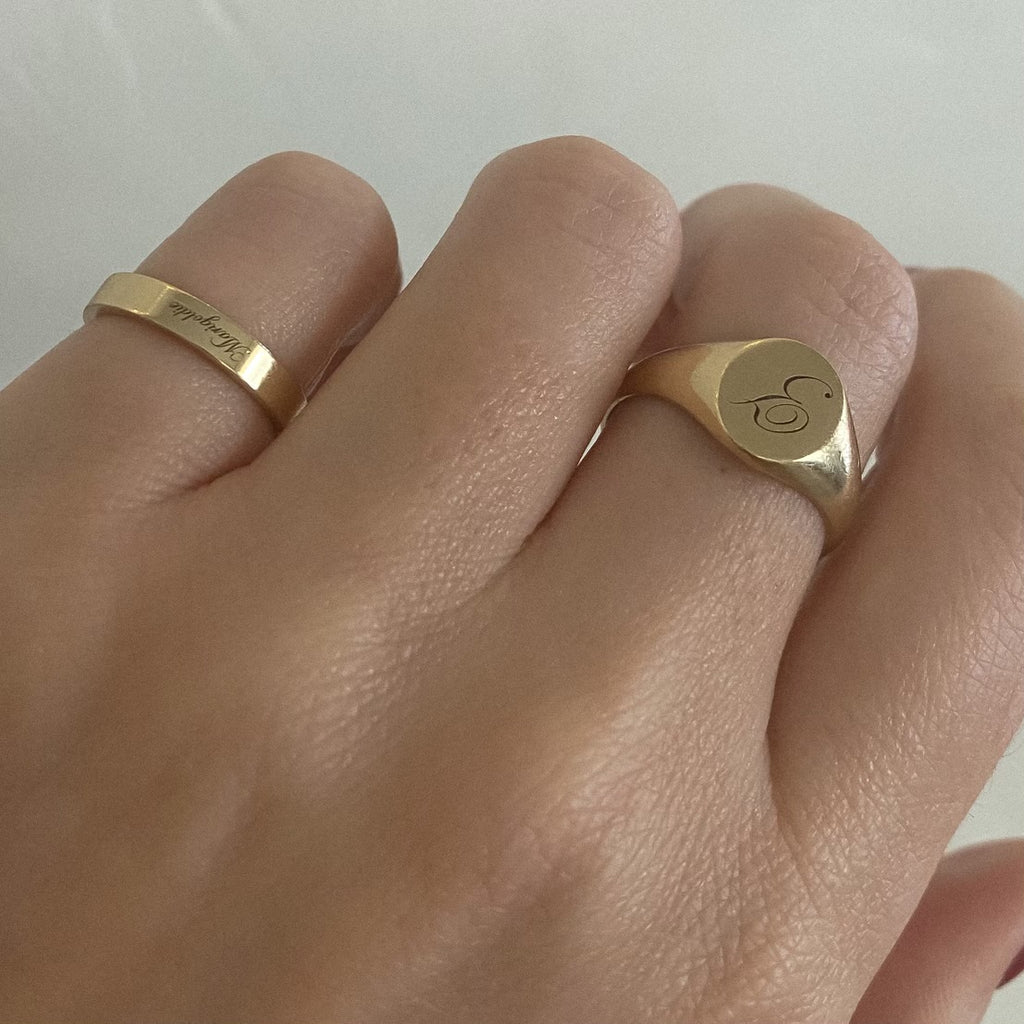MannaDestined to be a future heirloom. Solid, 14 karat gold is polished to a high shine and features custom love letters on top, a secret message within, or both.