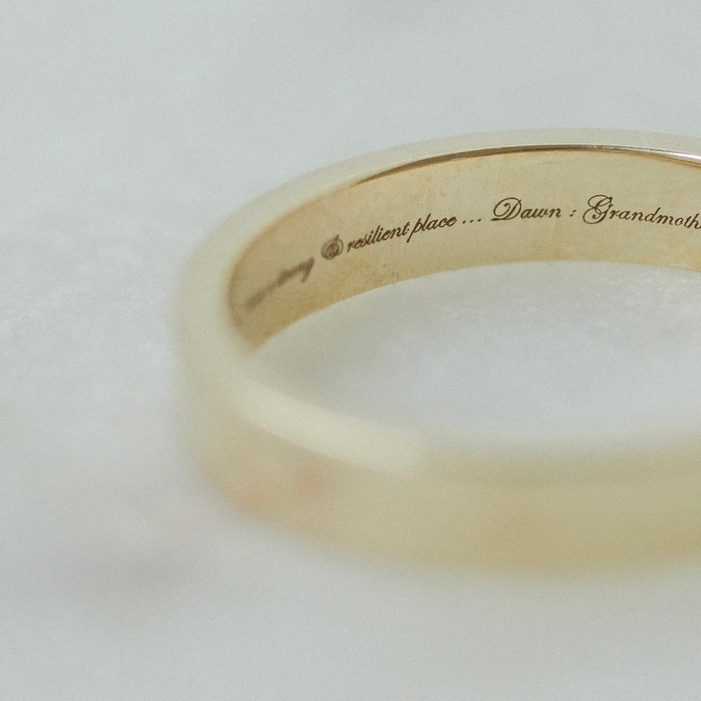Please select whether you would like this band with inside engraving only, outside engraving only, or both inside and outside engraved. Please enter your custom engraving in the "special notes" section upon checkout. For inside message: up to 177 characters. For outside message: up to 148.