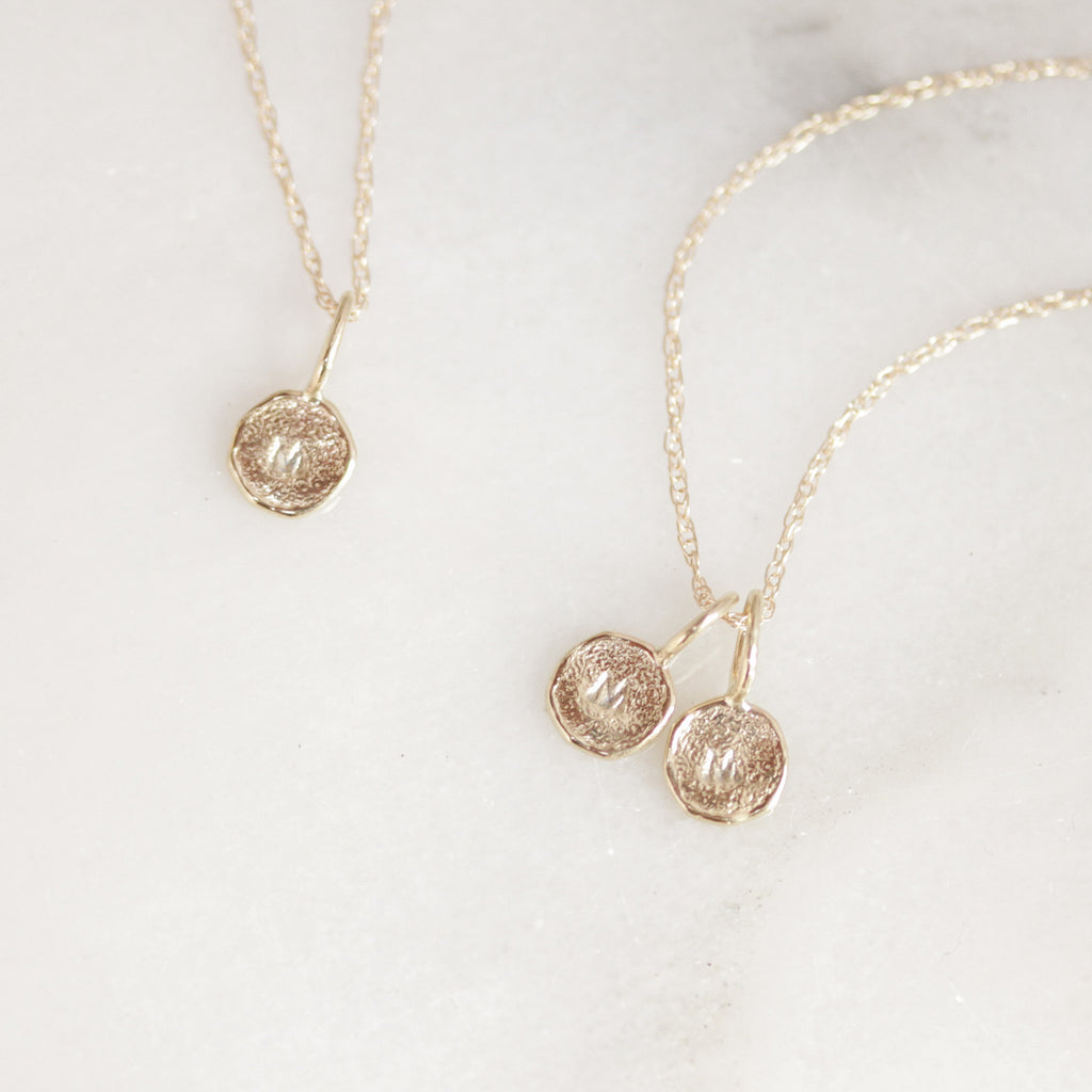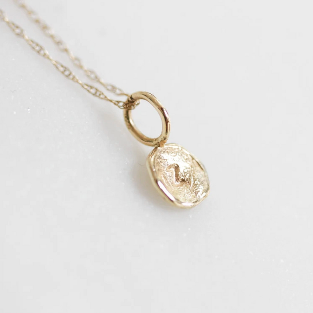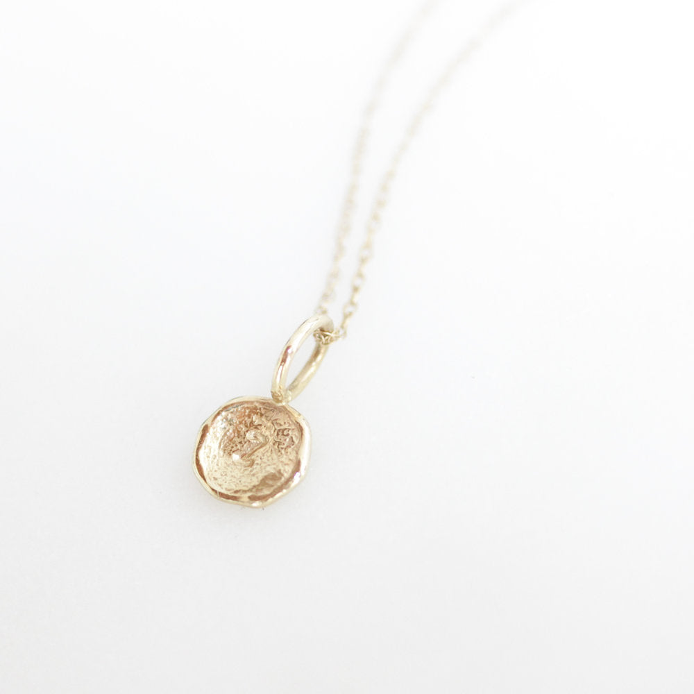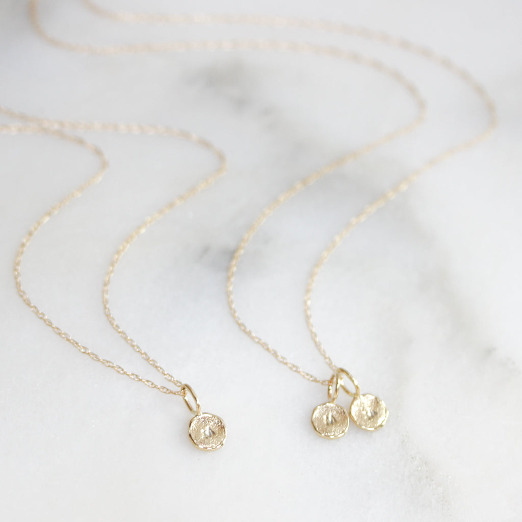 MannaA petite, solid 14K gold pendant is hand stamped and hangs from a solid 14K gold, 16” chain (0.75mm). Simply select your desired letter or number.
