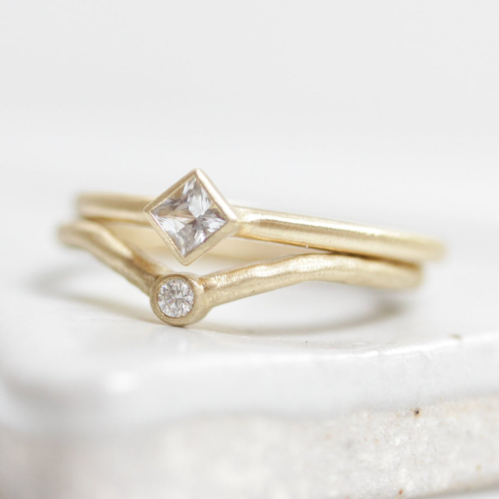 All of our pieces are made with genuine diamonds and gemstones. All stones are ethically sourced, comply with the Kimberly process and are certified conflict free. We offer both ethically mined and ethically grown options, the choice is yours. Ethically mined stones may require a quote as market availability is always changing. Please email for other stone options and sizes.