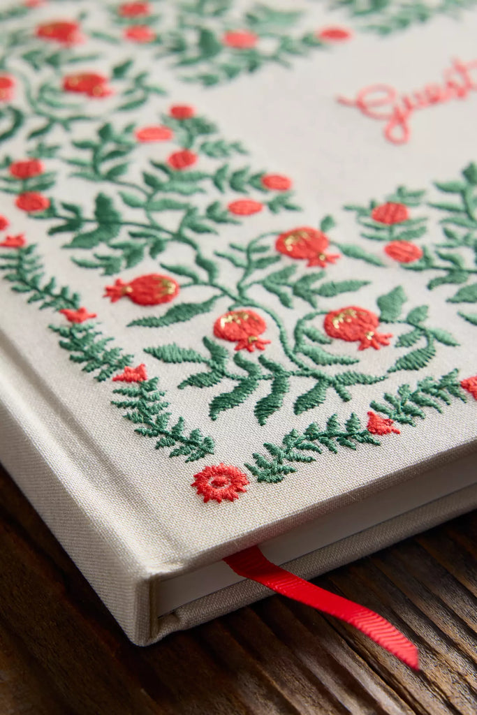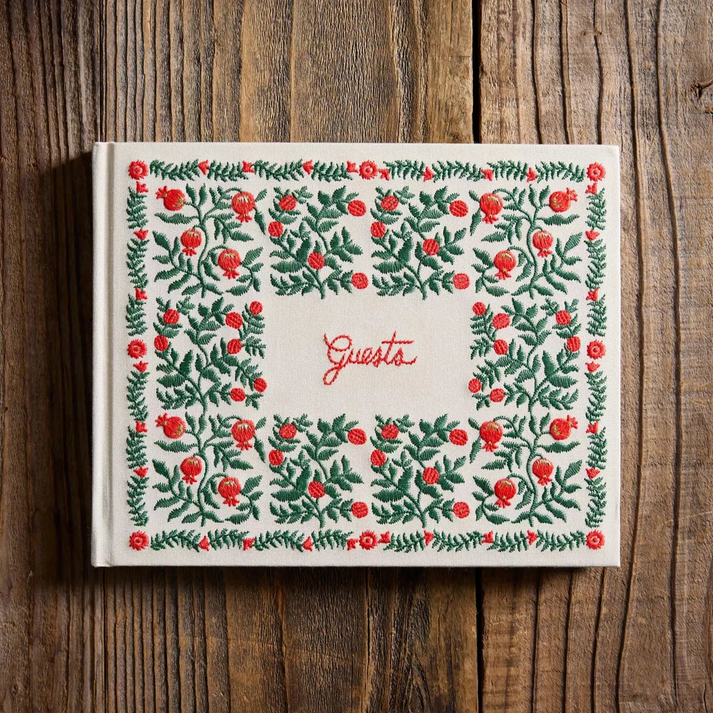 Embroidered Guest Book - Christmastide Pomegranate