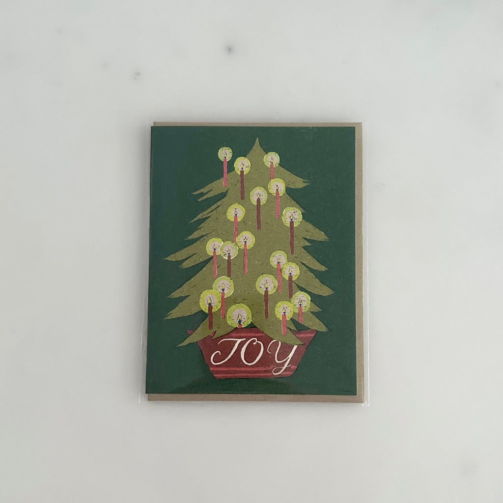 Printed on soft white, FSC-certified stock. Blank inside. Plastic sleeve is compostable and made from plants. Matching envelope included.
