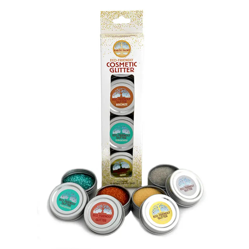 MannaHigh-quality, ultrafine Eco-Friendly Cosmetic Glitter. Plant-based and biodegradable. Includes four colors: gold, silver, bronze and turquoise. It is certified cosmetic-grade, so you can use it with confidence on your face & body, craft projects, and paintings.