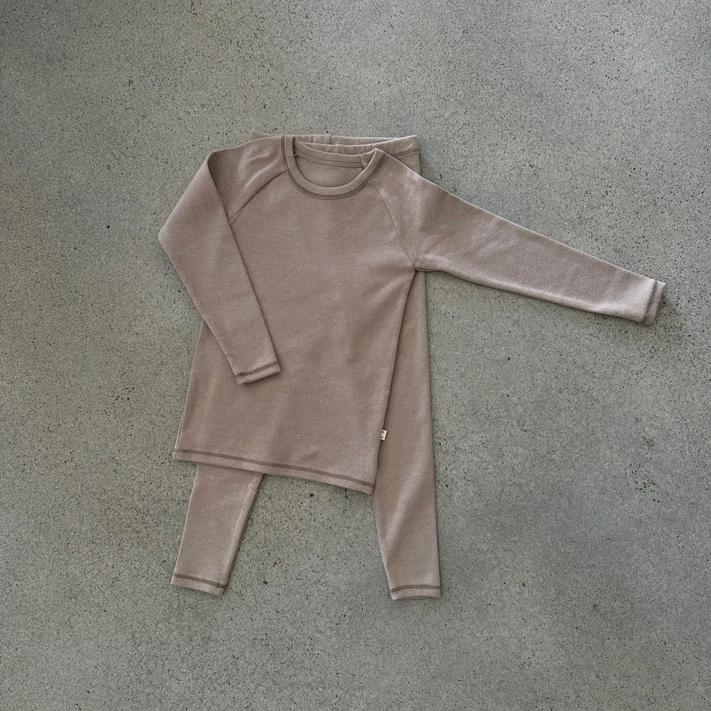 Kids Neutral Long Sleeves Pajama Set - Beige