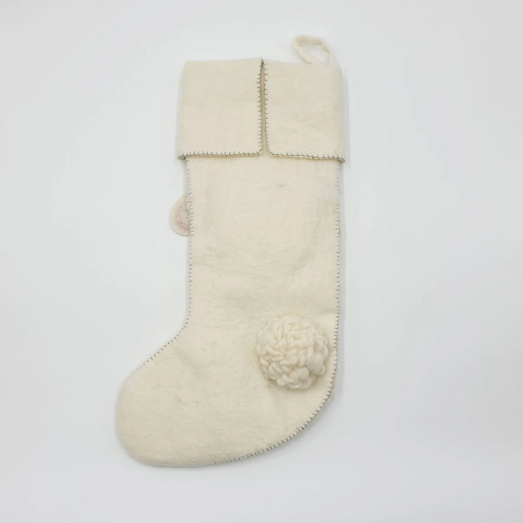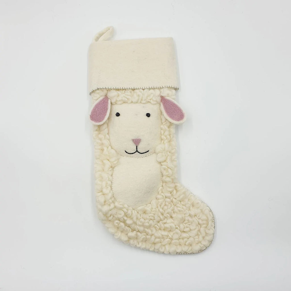 MannaThis adorable sheep Christmas stocking is entirely made by hand with organic felt and colored with eco-friendly dye. Full of charm this stocking has a three-dimensional face and tail. It will make a wonderful stocking for children whether nestled by a bed or hanging from a mantelpiece, ready to be filled with treasures!
