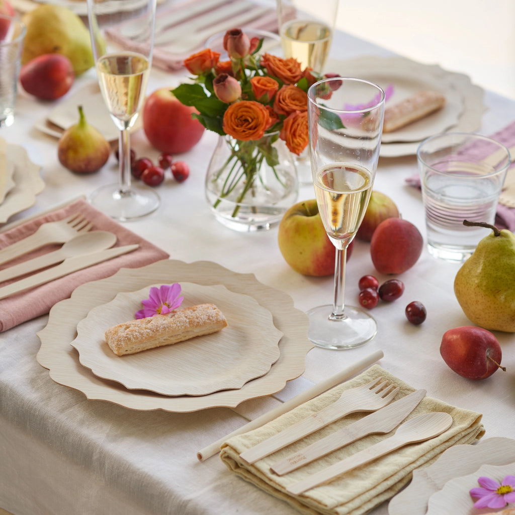 MannaVeneerware® disposable bamboo plates are an eco-friendly choice for meals at home, events, weddings, birthdays, picnics, summer cookouts, and more. bambu® Veneerware® single-use products are made from FSC®-certified 100% bamboo—a renewable resource.