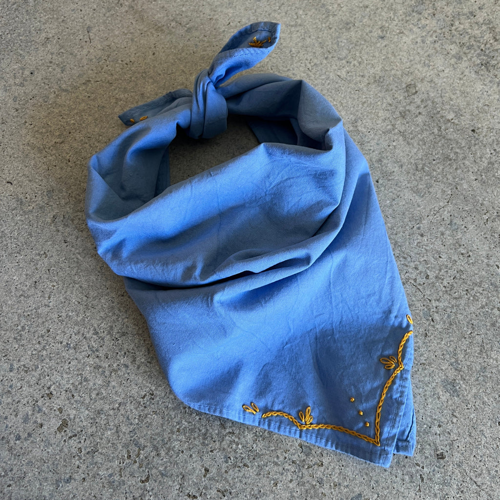 Hand Embroidered Rodeo Cotton Bandana - Sky / Mustard