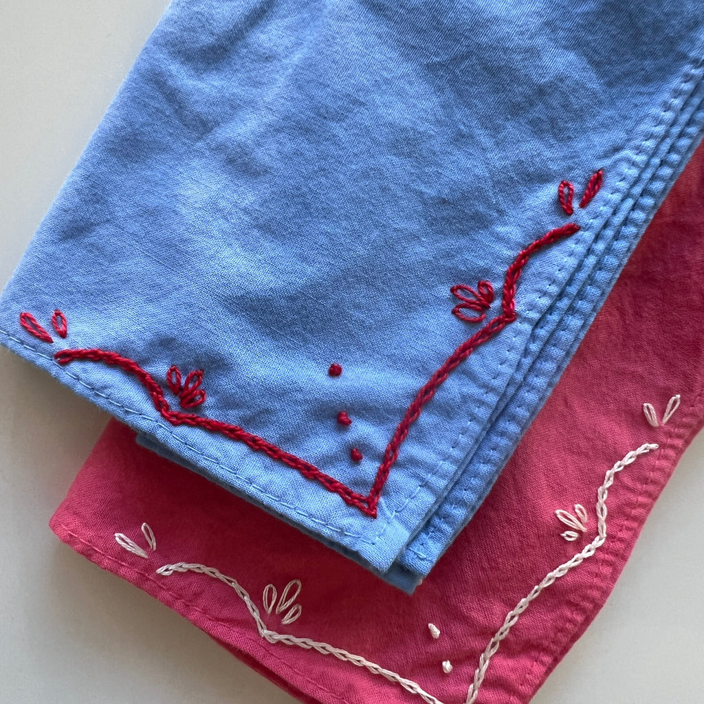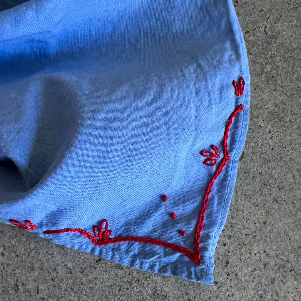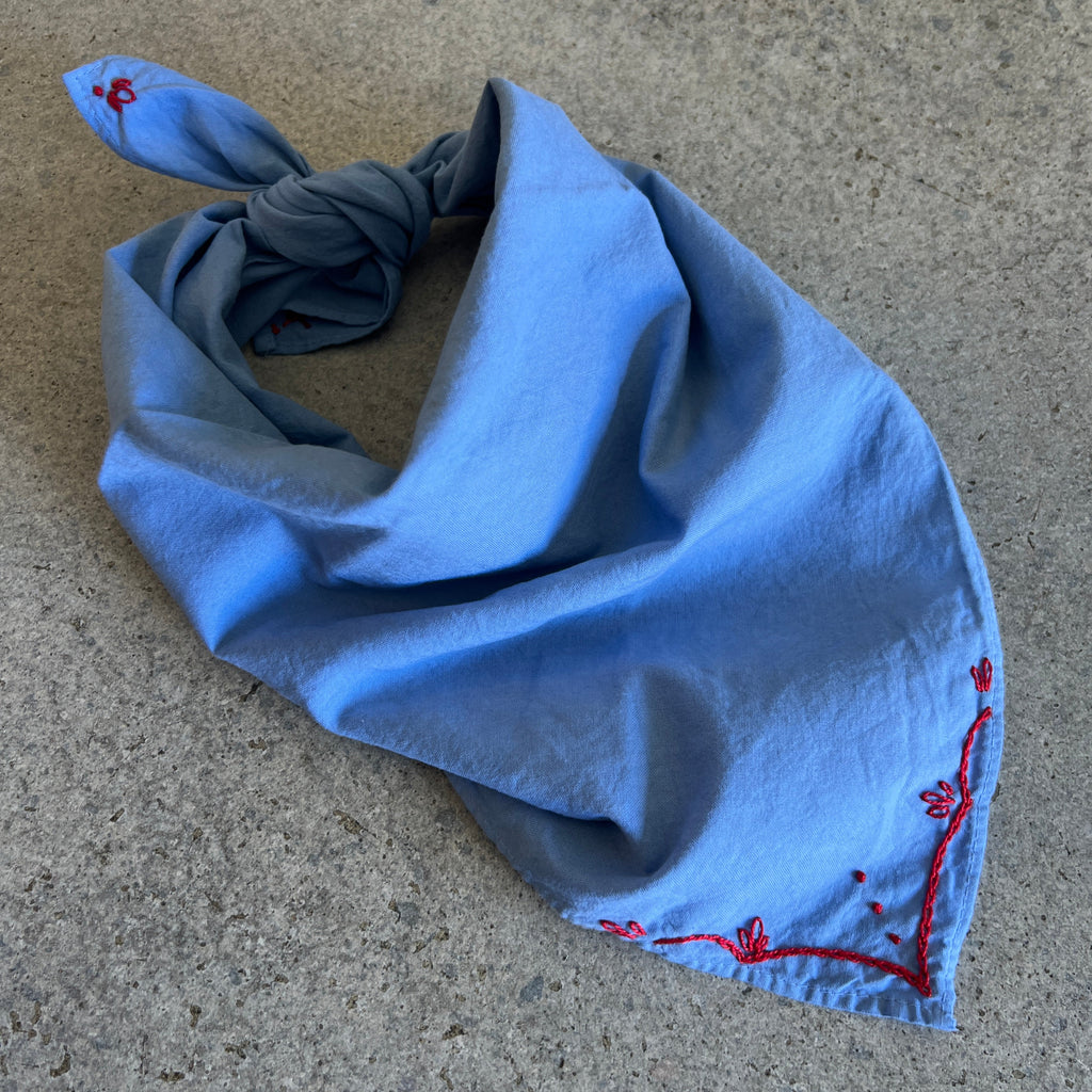 Hand Embroidered Rodeo Cotton Bandana - Sky / Red