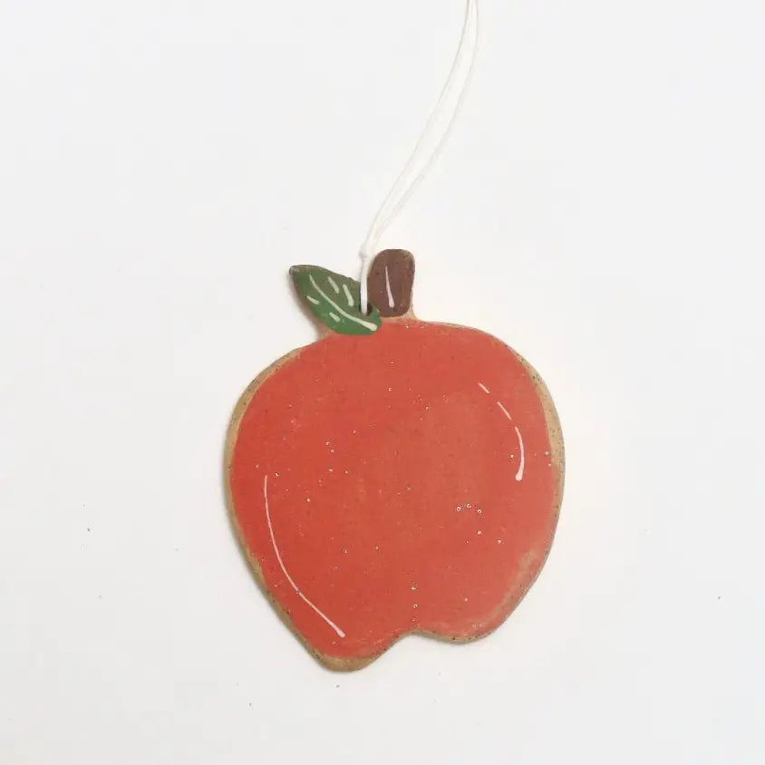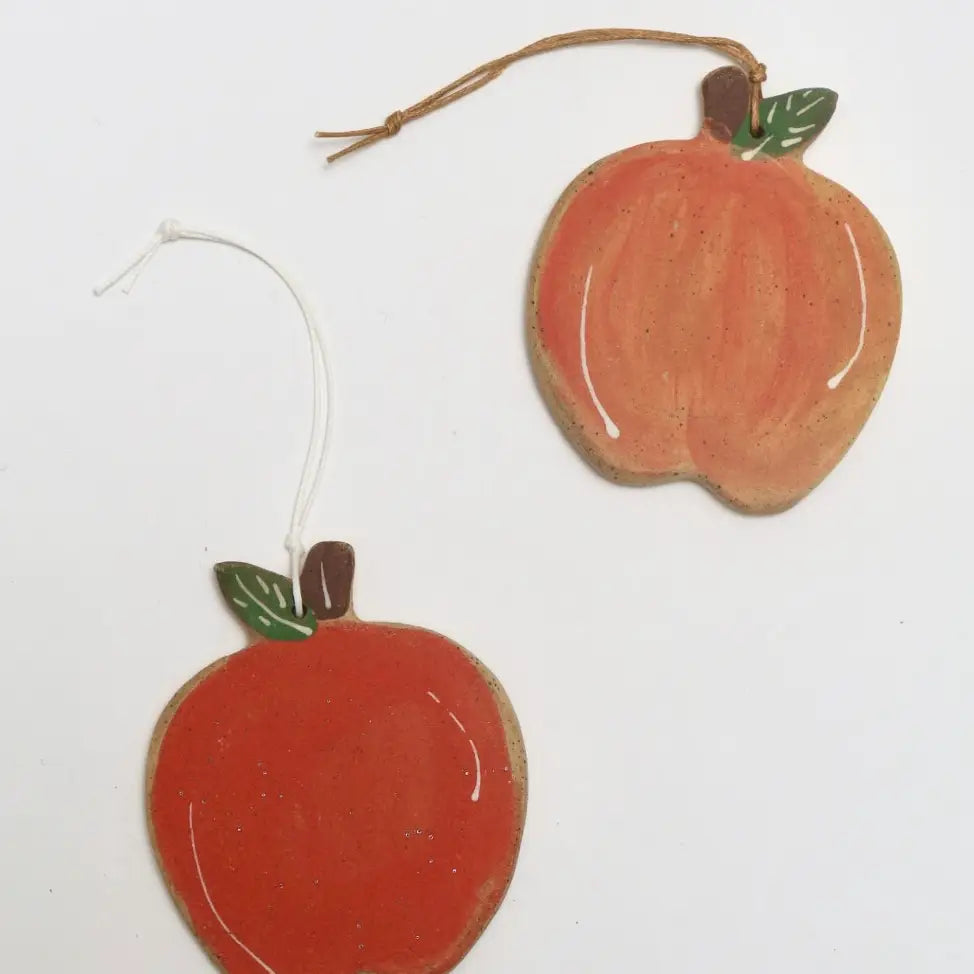 MannaHandmade ceramic apple ornament with hand painted details in colorful underglaze. Each ornament is strung with a durable nylon chord. These beautiful one of a kind ornaments make for lovely gifts during the holiday season.