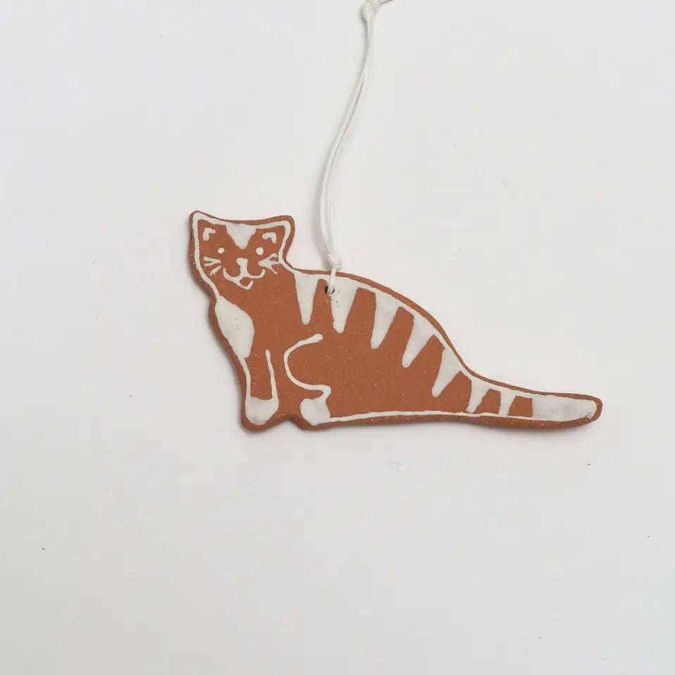 MannaHandmade ceramic cat ornament with hand painted details in colorful underglaze. Each ornament is strung with a durable nylon chord. These beautiful one of a kind ornaments make for lovely gifts during the holiday season.