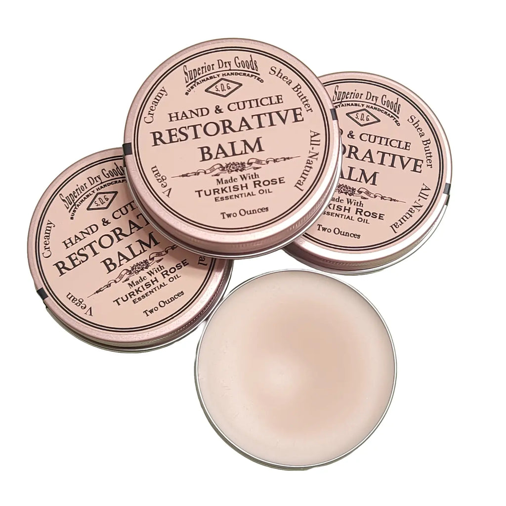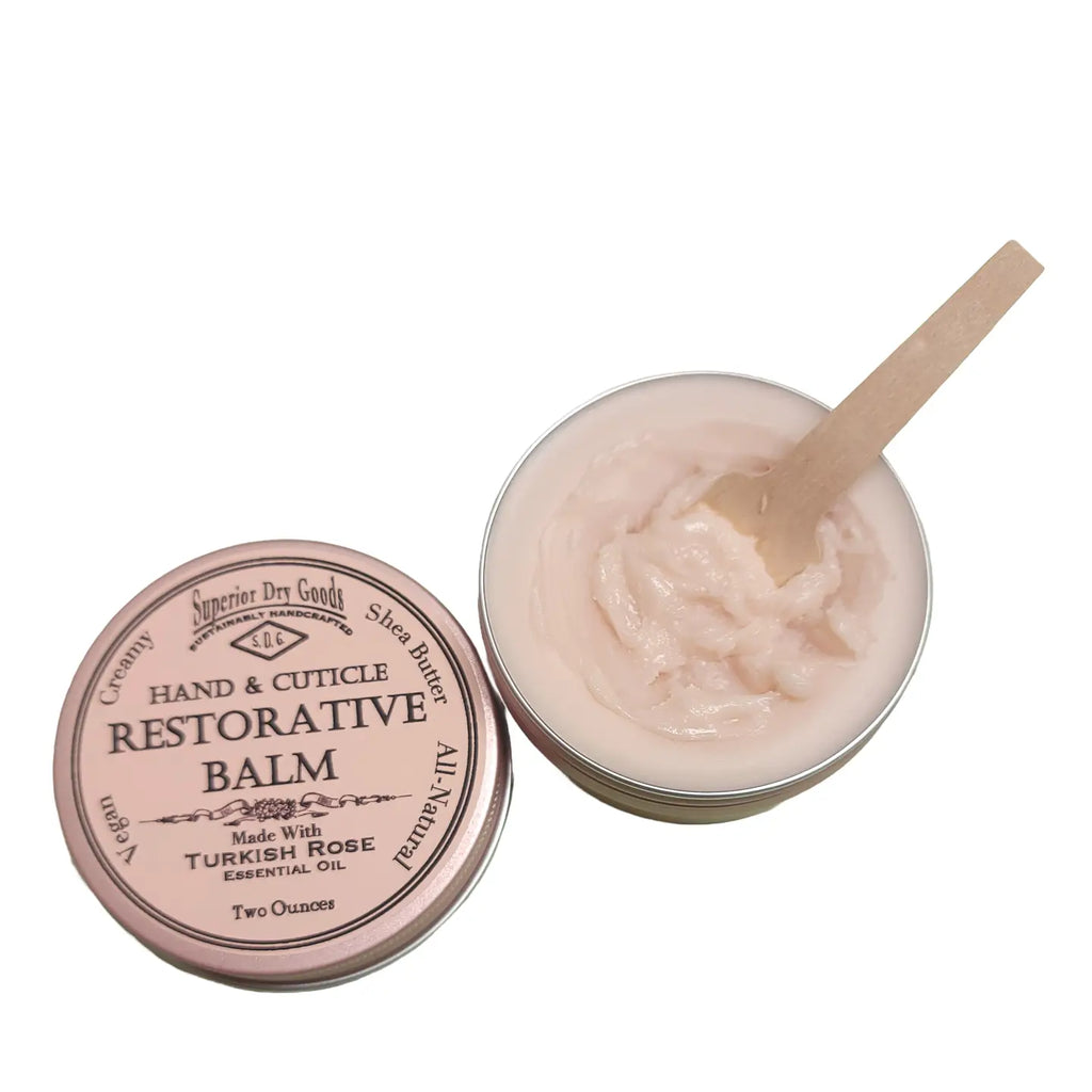 MannaHand & Cuticle Restorative Balm is an effective solution for parched hands and rough cuticles. Vegan and 100% natural, this creamy balm features olive wax, plum kernel oil, cocoa butter, shea butter and Turkish rose otto essential oil. Naturally sourced vitamin E provides long-lasting moisturizing benefits and encourages nail growth. Contains 75% organic ingredients. 2-oz tin.