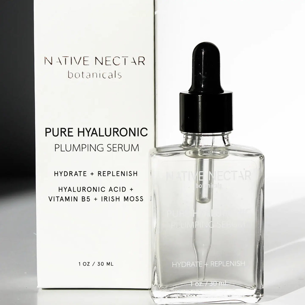 MannaThis Pure Hyaluronic Plumping Serum is natural and absorbs instantly to lock in moisture. Hyaluronic Acid is the ultimate ingredient to help restore the skin's hydration levels and give skin a plump, healthy appearance while boosting the performance of the rest of your skincare products. This serum brings moisture to the surface of your skin, improving elasticity and decreasing the appearance of fine lines.