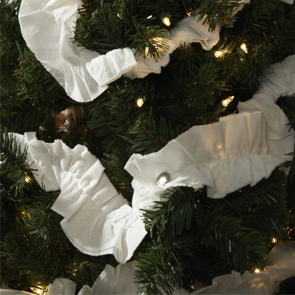 MannaMade from 100% cotton with a double-layer fabric. It features a vintage finish button on the left and a buttonhole on the right. With a tightly stitched micro ruffle running down its center. 9 feet long.